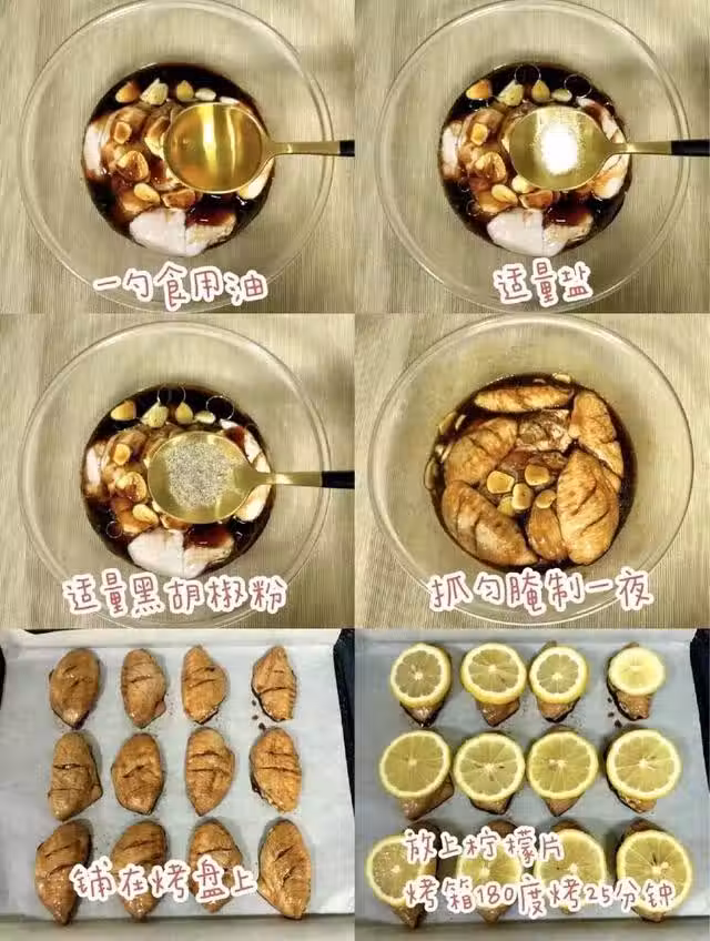 3將雞翅和料汁攪拌均勻,冷藏一夜3烤盤鋪油紙後放上烤翅,在烤翅上放檸檬片,送入烤箱180度烤25分鐘即可如時間不充裕,雞翅冷藏時間至少保證得2小時,才能更加入味烤盤上一定要鋪油紙,避免蜂蜜烤了以後會粘烤盤這道菜譜中的蒜片和檸檬是精華,一定不能少噢!
