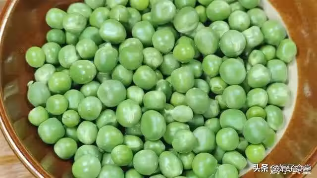 7、鍋中水燒開,加一勺鹽,把小青豆倒入鍋中煮一下,這樣吃起來不會發硬。