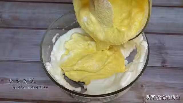 9,將米糊倒入到蛋白內,翻拌均勻。