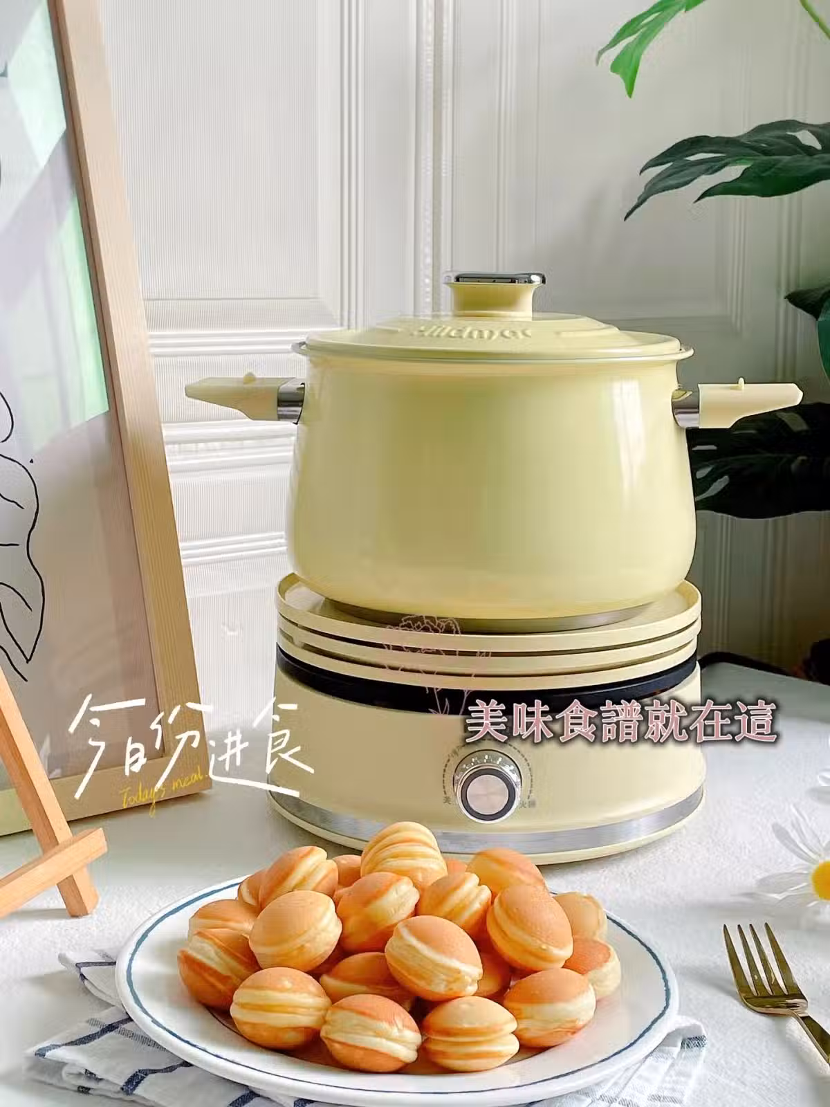 🌿🌿做好的雞蛋仔圓嘟嘟金黃誘人,奶香十足鬆軟可口.小朋友一口一個倍兒喜歡!用的希蜜多功能鍋的丸子煎盤,導熱快受熱均勻.還配有煮鍋和別的煎盤,做小吃蠻方便噠