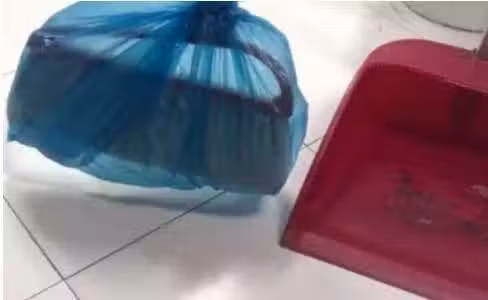 準備一個大一點的塑料袋。然後再準備一個掃把,接著就把塑料袋套在掃把上面,然後再打一個結。將他們都安裝好了之後,我們就用這一個掃把在地上掃。將這些頭髮都掃在一個部位,然後就可以用張紙將他們包住一起丟掉了。