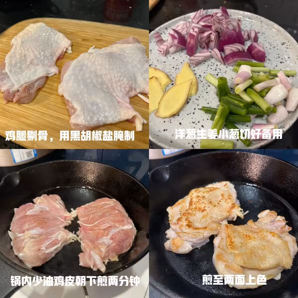 1️⃣雞腿肉剔骨,撒上少量黑胡椒和鹽腌制(15-30分鐘)
