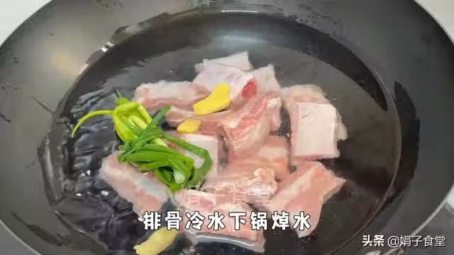 2、焯水後的排骨用熱水清洗乾淨,重點哦,用熱水清洗,這裡用了涼水肉會變柴變硬哦。