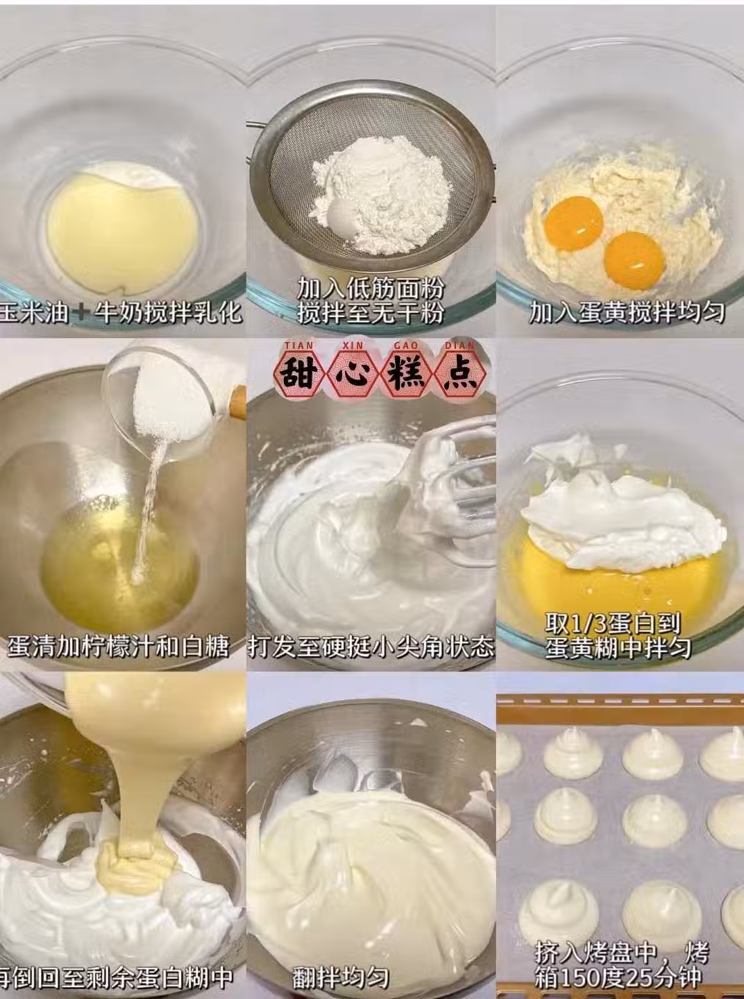 1)玉米油+牛奶攪拌乳化,加入低筋
