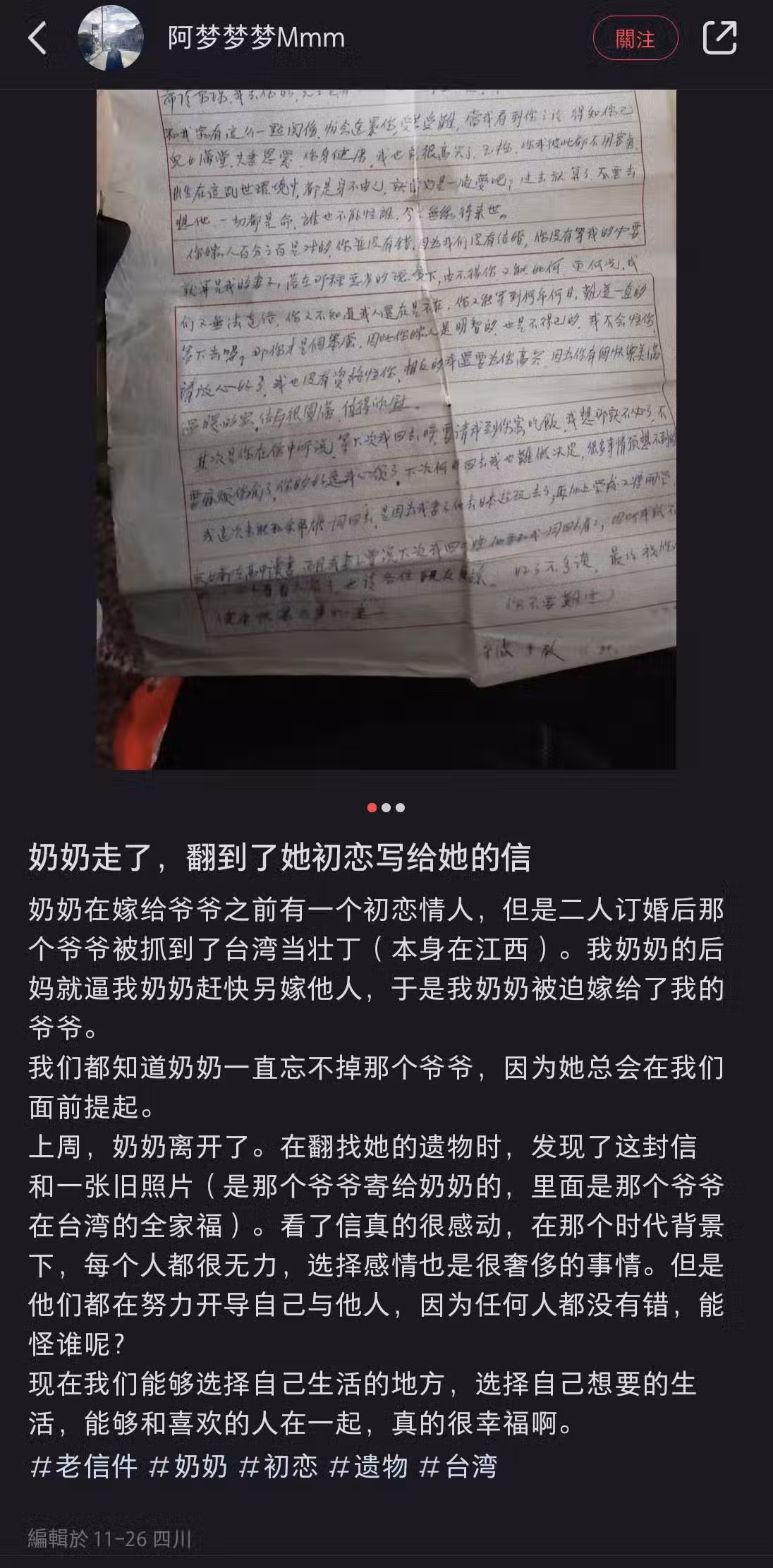 整理奶奶遺物...翻到「初戀情人手寫信」!看完全信「最後一句」惹哭全網:大時代的遺憾啊