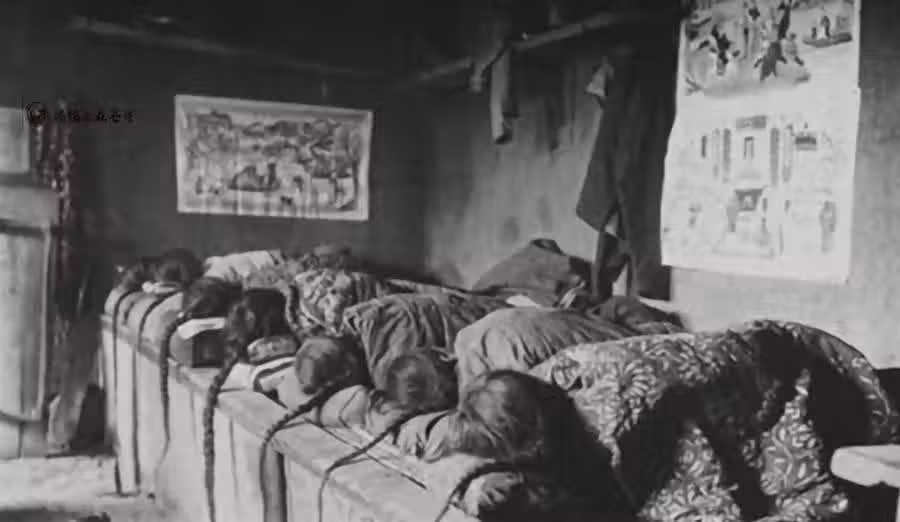清朝人睡覺,睡得是大通鋪,辮子是這樣放的。夏天裡一個月洗一次,冬日裡基本不洗,聞之作嘔。