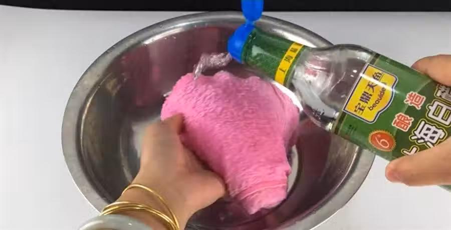 首先準備一條毛巾,用白醋把毛巾完全浸濕,直至毛巾可以滴下白醋為止。