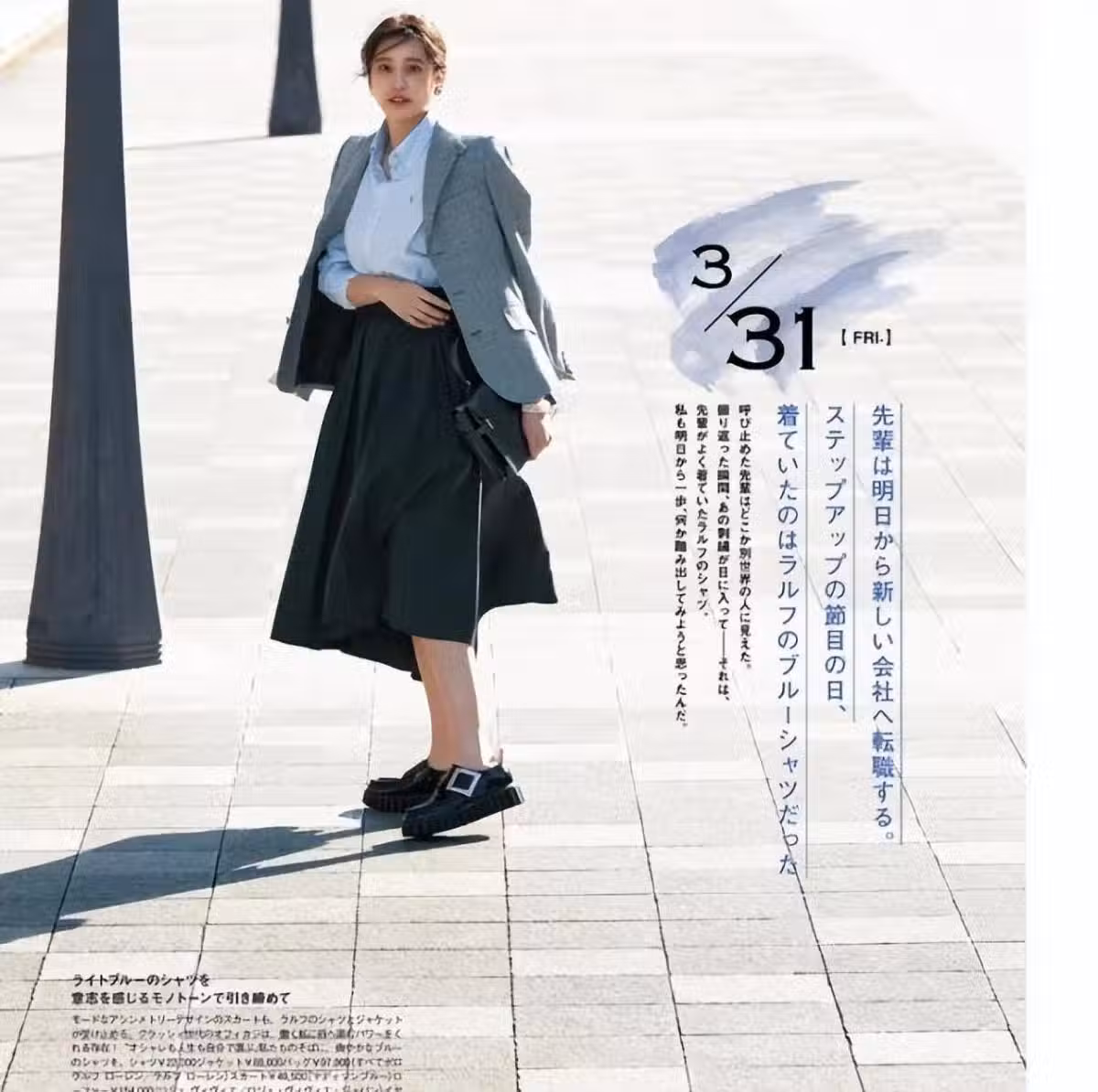 這種配色方案最適合牛仔夾克和T恤。口袋褲或者九分牛仔褲用綠色裝飾,會比藍色顯得更清新、更明亮。即使在通勤時穿著也會顯得時尚正統。