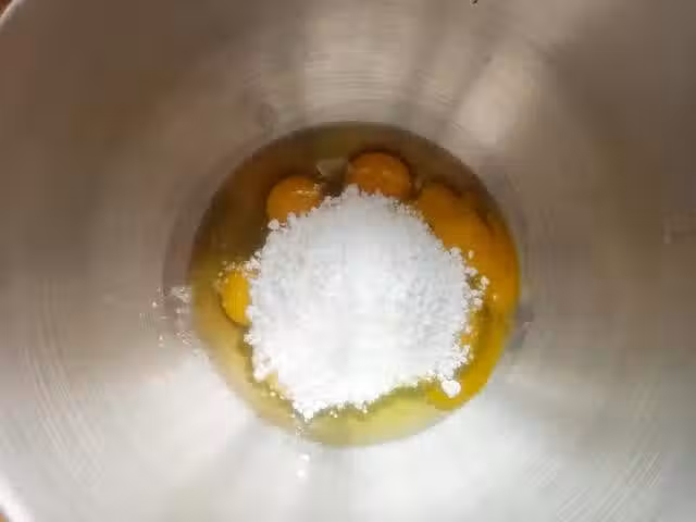 5、打發到蛋液體積膨大,質地濃稠,並且提起打蛋器,滴落下來的蛋液糊在短時間不會立馬消失即可,如圖所示