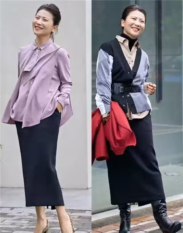 直筒裙自帶立體感,對腿型有著極好的修飾效果。如果喜歡知性一些的風格,就可以選擇襯衫和直筒裙的搭配,很有通勤風穿搭的效果。但若是想要打造出更溫柔一些的風格,就可以選擇針織開衫和直筒裙的搭配,適當弱化直筒裙過分嚴肅的氣息。