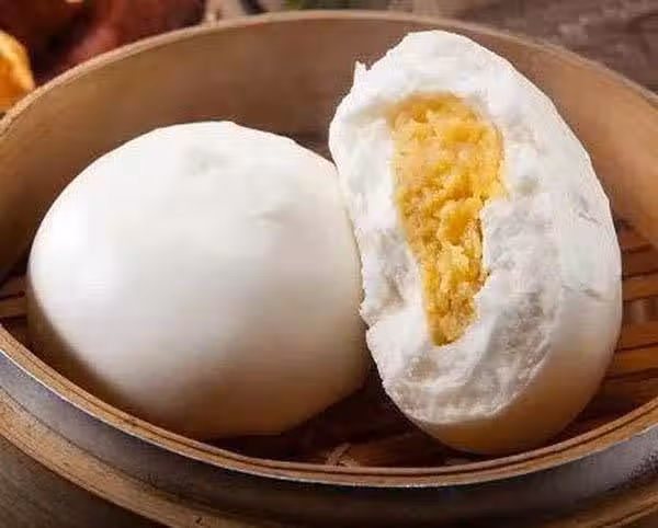 8、將作法2的空蒸籠,放入乾淨膜紙後,將作法7的地瓜泥包放入蒸籠中,以中大約蒸約10分鐘即完成。