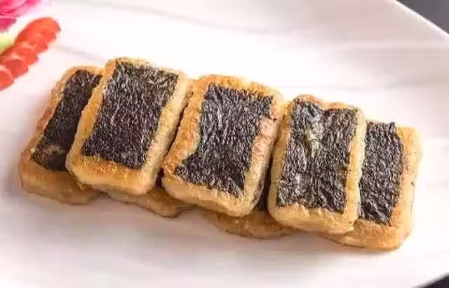 3. 煎盤燒熱,下少許油,放入海苔餅慢火煎至兩面金黃出鍋,擺盤即可。
