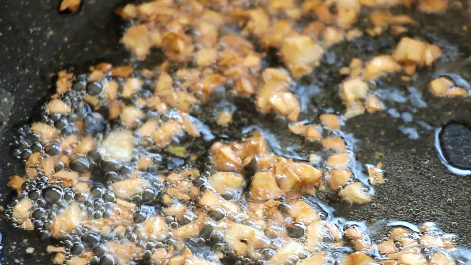 2、蒜末不要切得太小,否則一會兒入油鍋炸的時候很容易炸糊,把蒜末放入清水中浸泡一會,也是為了防止蒜蓉炸糊有苦味。