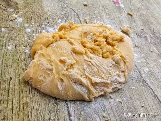步驟四:平均分成九份,大概50克一份,利用乾粉,再用手掌將每一份麵糰按壓一下,用虎口將其收圓,蓋上保鮮膜進行第二次醒發十分鐘