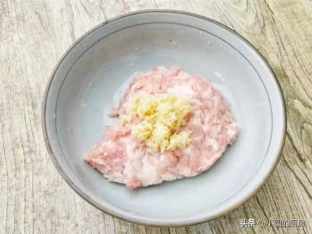 步驟二:開始來給肉餡調味,加入鹽,生抽,蚝油,雞蛋,白糖,雞粉,用筷子順時針充分的將肉餡攪拌上勁,加入了雞蛋,口感更加的鮮嫩有營養