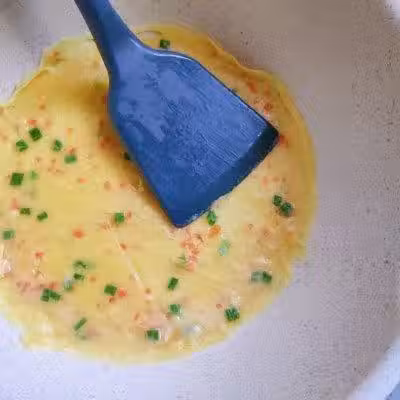 7、也可以藉助鍋鏟均勻把麵糊攤成圓餅,小火煎1分鐘。