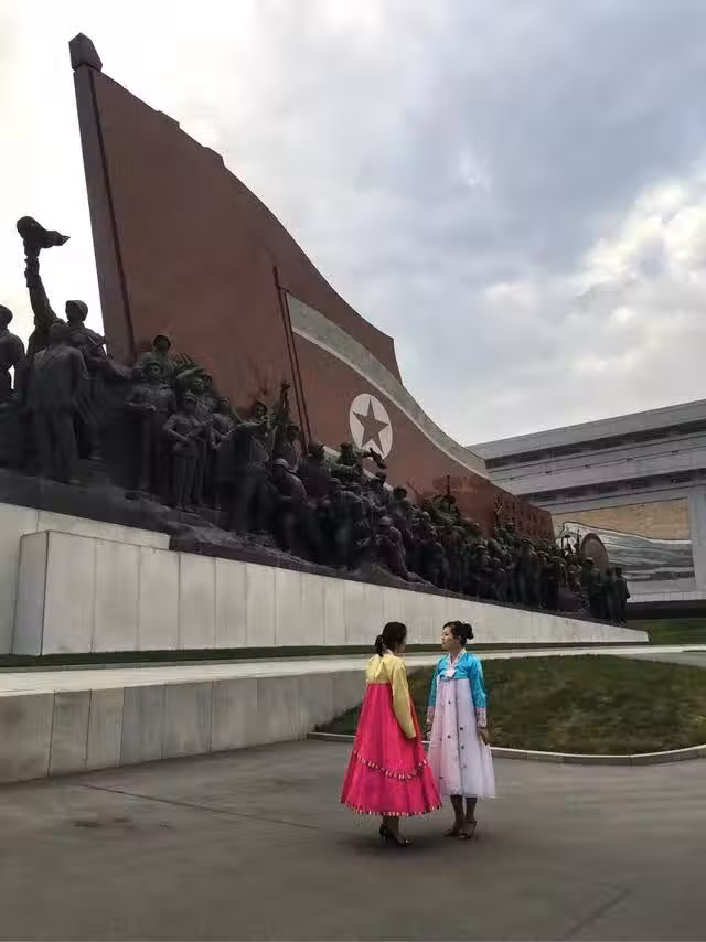 在平壤參觀期間,有一個體驗平壤地鐵的項目,起初並不在意,畢竟國內地鐵坐的多了,見怪不怪,但沒想到朝鮮的地鐵竟然有如此多與眾不同的地方,導遊帶領大家來到的是一號線的榮光站,朝鮮地鐵修建的非常深,平均深度位於地下百米,最深處可達200米,據說帶有防空洞的功能,遊客乘坐扶梯下行將近10分鐘才抵達月台,與國內的月台不同,這裡沒有璀璨的廣告牌,沒有現代化的服務設施,最惹人注意的就是棚頂的水晶吊燈以及兩側牆壁精美的壁畫,朝鮮本地人乘坐一次需要5朝元,四捨五入相當於不要錢,一站地的免費體驗過程很快就結束了,轟隆隆的地鐵聲音吵鬧的很,真不明白為什麼要安排這項活動!