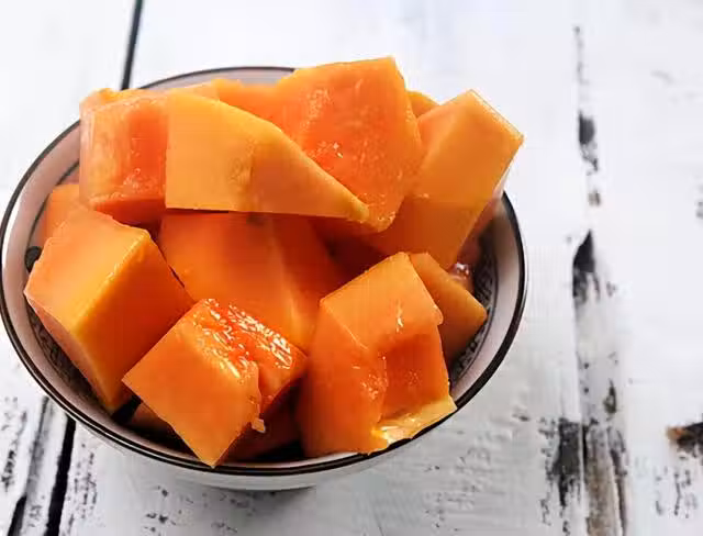 製作過程:第一步,木瓜2個,分別清洗乾淨,將木瓜籽挖掉,木瓜果肉切成塊待用,鯽魚2條,去除內臟以及其他不能吃的部分,鯽魚徹底清洗乾淨;