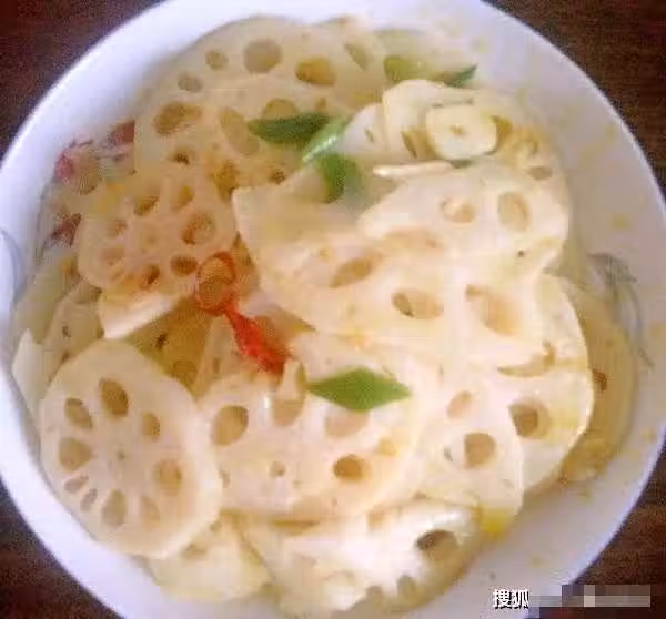 第三步,將蓮藕用鹽水浸泡。我們把切好的蓮藕放在一個大碗里,泡在水裡。浸泡過程中撒點鹽,因為鹽水還能抑制蓮藕的氧化。過了一會兒,你把它們拿出來觸摸它們。 ,這樣炒出來的蓮藕也很白,很漂亮。