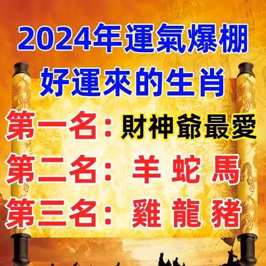 2024年得財神青睞,運氣爆棚,好運來的生肖