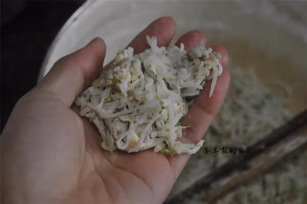 挑起一團蘿卜絲,放在手心。