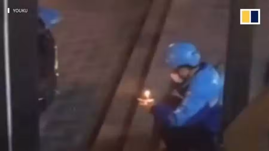 工作人員跟著快遞員走了進去,卻看到快遞員正坐在台階上,點燃了一根蠟燭,給自己過了一個簡單的生日。