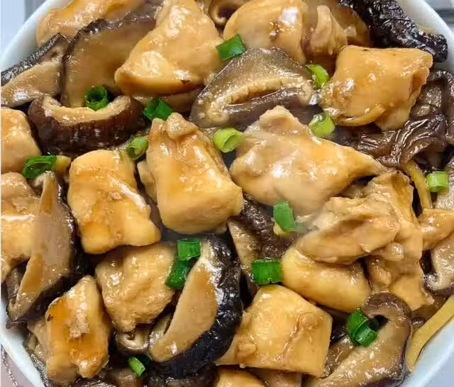 食材準備:雞腿、香菇、生薑、食鹽、小蔥、生抽、蚝油、料酒、澱粉