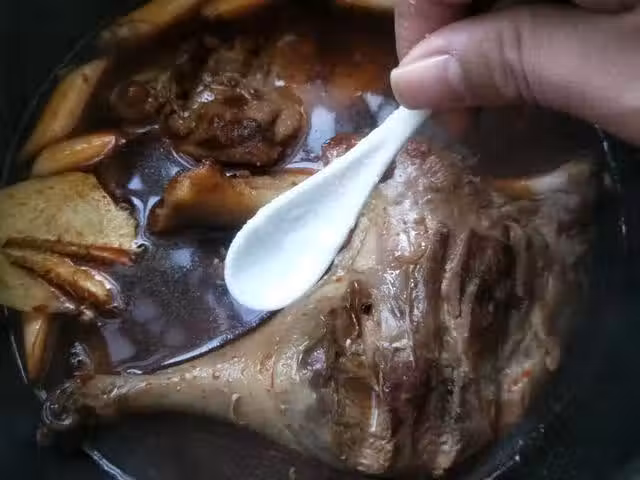 第九步:高壓鍋壓40分鐘,時間到了打開鍋蓋,將鴨腿撈出來,如果覺得湯汁不夠濃,鴨腿不是很上色的話,就放入燉鍋中收干湯汁就可以了,吃的時候撒上一點芝麻在上面。,增加鴨腿的顏值,大家學會了嗎?這種懶人的鴨腿吧的做法,特別適合上班族還有帶孩子的媽媽們。