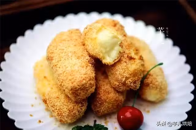 食材:牛奶 210克,玉米澱粉 25克,煉乳 一小勺,奶粉 20克,白糖 20克,麵包糠 45克,椰蓉 20克,玉米油 25克,雞蛋 2個