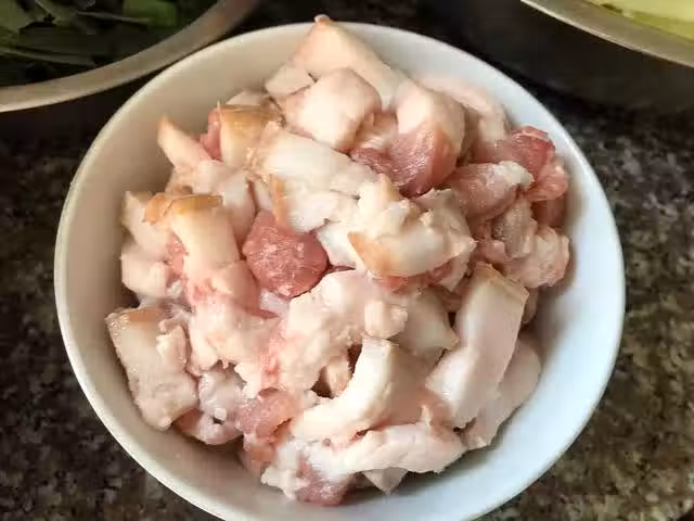 干香菇要先清洗乾淨,然後用40度左右的溫水泡發,泡發時候加入適量的白砂糖,可以保留其原味鮮美和營養。泡發好的干香菇切成細丁。
