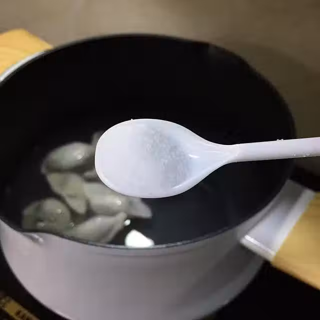 水餃下鍋後,蓋上鍋蓋,等到水沸騰後,打開鍋蓋,加入一碗水;然後繼續蓋上鍋蓋,等水再次沸騰後,再加入一碗水,然後再蓋上鍋蓋,等第三次沸騰後,餃子漂浮上來,再下一碗水,然後蓋上鍋蓋,等鍋中水煮沸後,餃子明顯變大很多,即可撈起來瀝干水分。