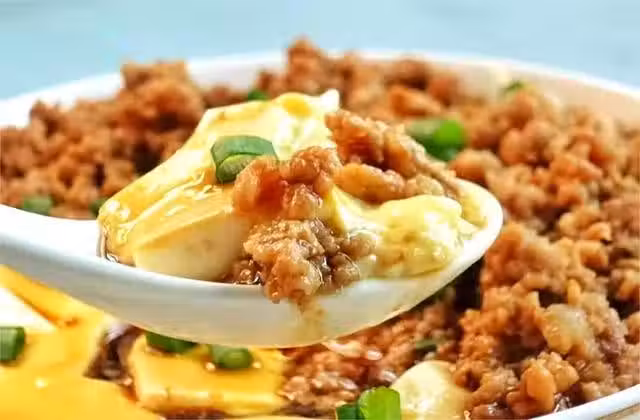 步驟四:把肉末炒熟,雞蛋羹凝固後,將肉末鋪在雞蛋羹上,繼續蒸2分鐘。出鍋淋上一點生抽、香油、撒一點蔥花即可。嫩滑可口,低脂低熱量,快來試試。