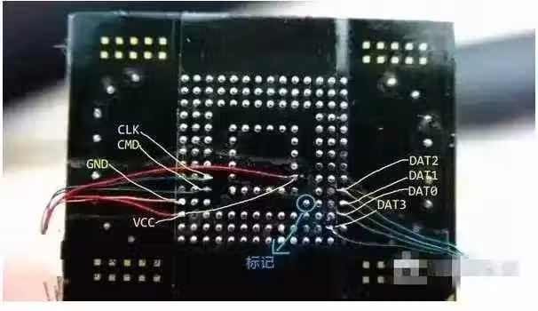 eMMC晶片,簡單的說就是一個集成了控制器的閃存晶片,再簡單點說,可以通過讀卡器,類似內存卡一樣去使用它,這時候需要把晶片上對應的引腳接到讀卡器上。