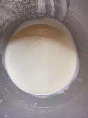 1、把雞蛋和糖一起攪拌至糖融化,加入椰漿,水,鹽一起攪拌均勻後,加入篩過的粉類攪拌均勻靜放20分鐘