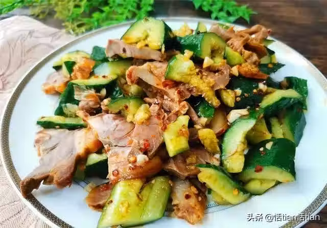 食材:黃瓜2根、豬頭肉500克、香菜1棵,大蒜4瓣、鹽適量、香油1湯匙、辣椒油1湯匙、生抽醬油1湯匙、白糖1湯匙、米醋1湯匙、
