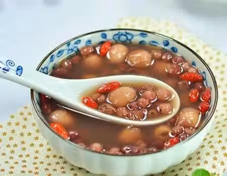 食材:紅豆200g、蓮子200g、薏米100g、水適量、枸杞適量