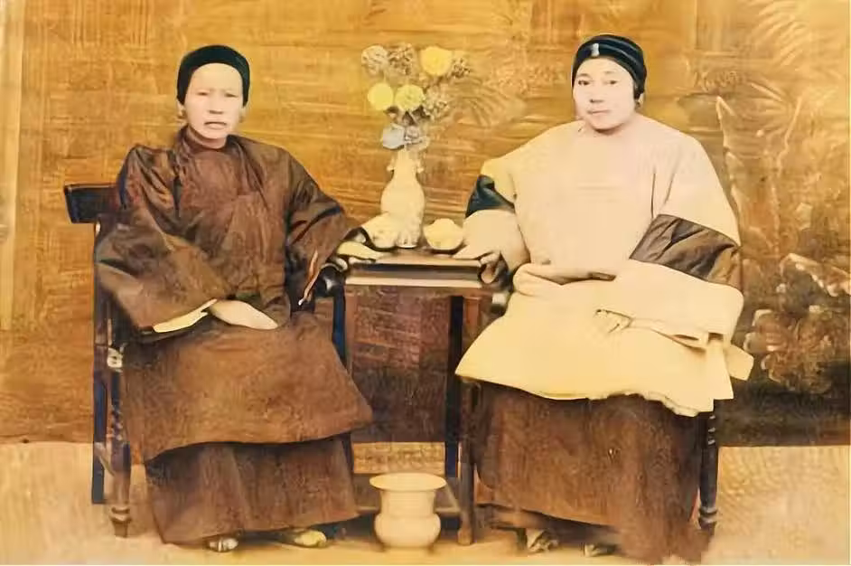 這是當時的兩位女子的擺拍,首先是晚清的人對於相機照相這個問題有些反感。而且能去照相館拍照的人至少都是挺有錢的主。
