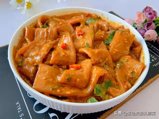 家裡沒有芝麻醬只有花生醬,所以我就用花生醬代替了芝麻醬,不過我家的花生醬裡面有顆粒花生,口感一點也不比芝麻醬遜色,甚至味道還要更好一些。