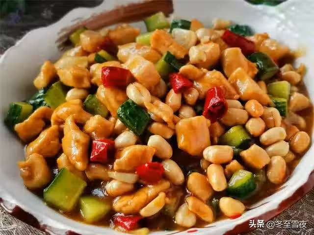 【家常版宮保雞丁】所需材料:雞胸肉1塊、胡蘿蔔半根、黃瓜半根、油酥花生、油鹽適量、蔥1段、姜2片、大蒜2瓣、香醋4勺、白糖3勺、生抽1勺、清水1勺、澱粉2勺、料酒半勺、干辣椒7-8個、花椒10幾粒、