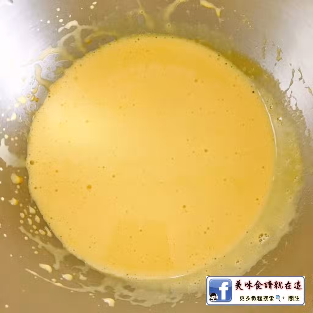 3、牛奶小火熬至微微冒泡,趁熱倒進蛋黃液,快速攪拌。