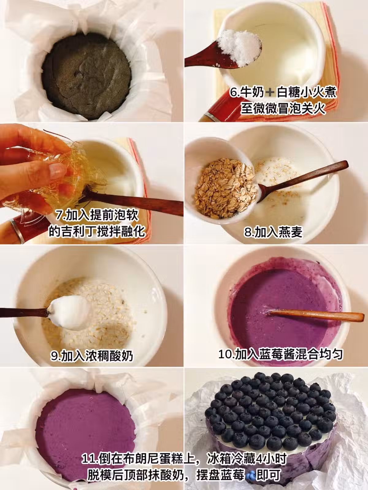 7️⃣脫模後頂部抹酸奶,擺上藍莓即可