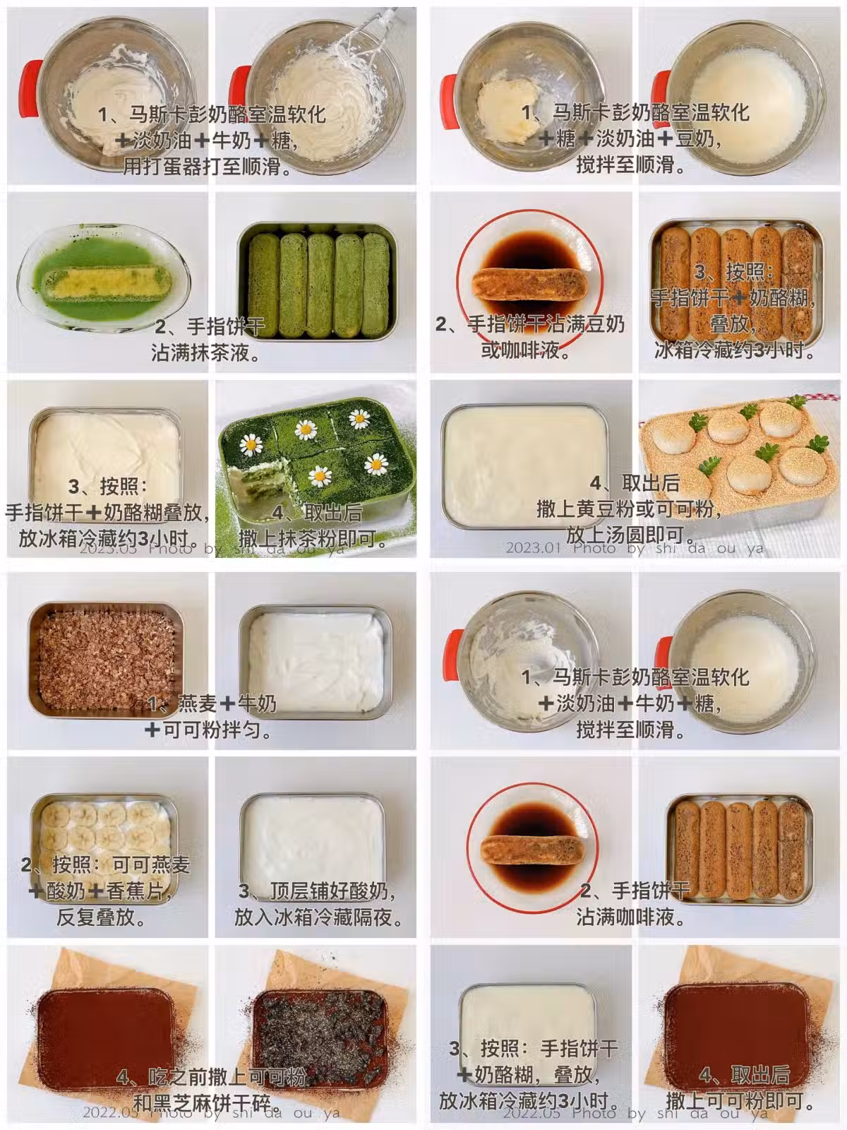 4️⃣取出後撒上抹茶/可可/黃豆/黑芝麻粉即可。