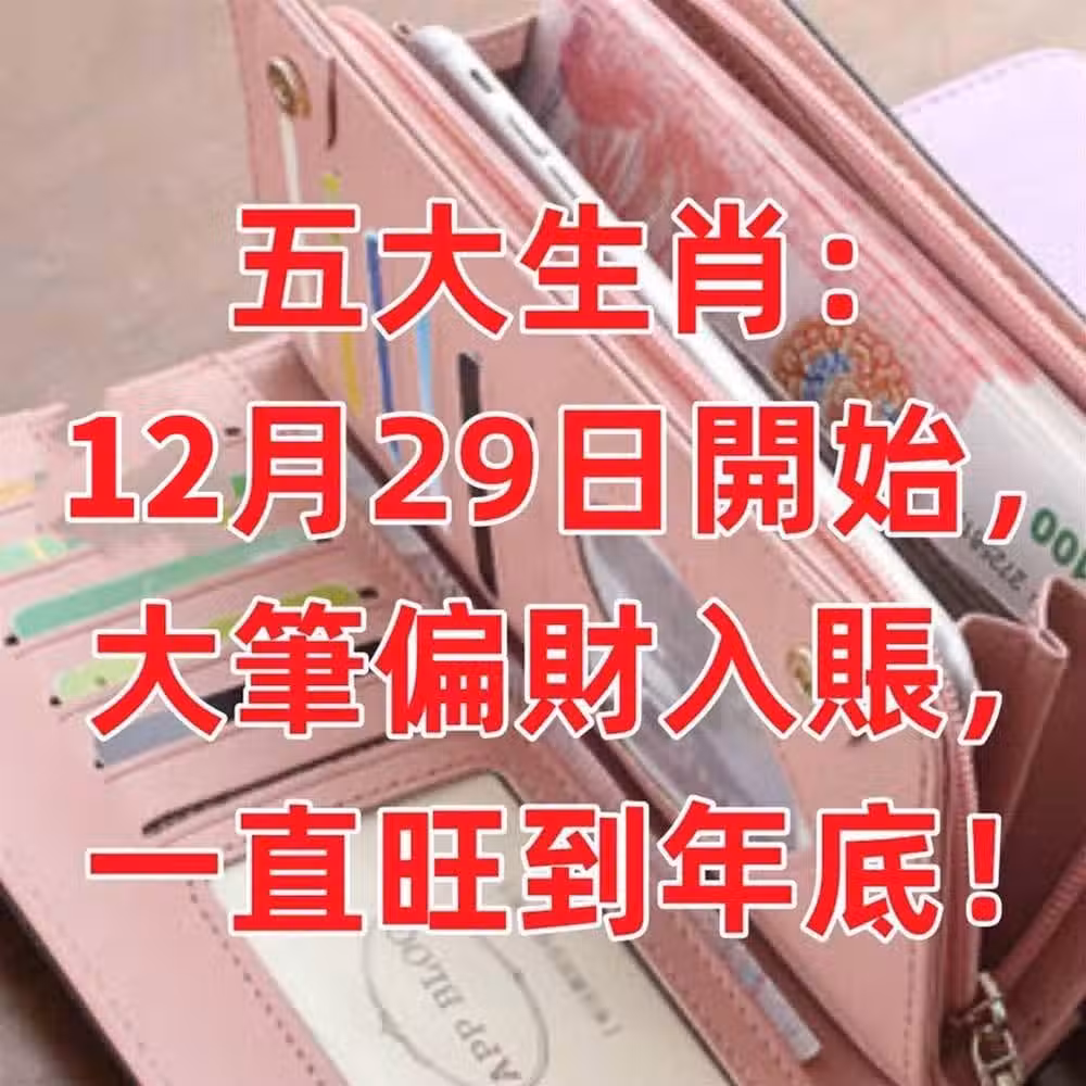 12月29日開始,大筆偏財入賬,一直旺到年底的生肖!