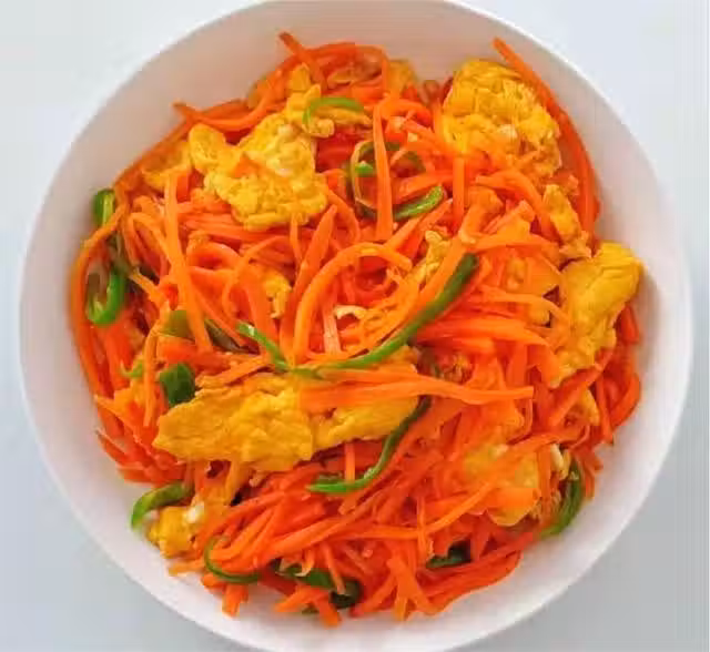 步驟一:先把胡蘿蔔洗凈,再切成細絲,如果擦絲器擦出來的太細了,一炒就爛了,我覺得切得比較好,但是很考驗刀工。