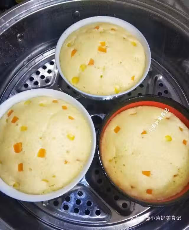 全蛋液(2個雞蛋的份量)、自發粉180克、玉米粉70克、玉米粒適量、胡蘿蔔適量、酵母2克、白糖40克、鹽1克