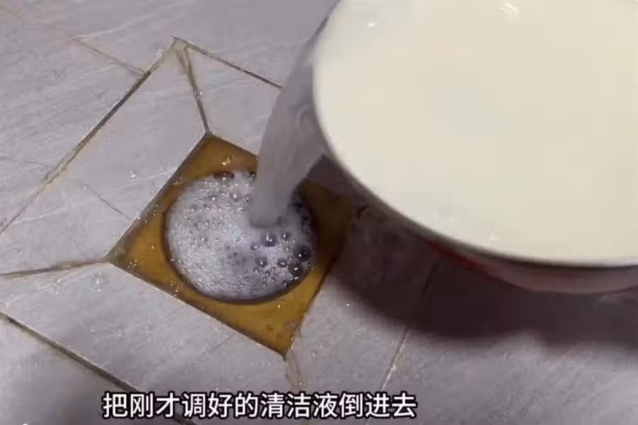倒進去之後我們讓它保持15分鐘,原理非常簡單,是因為小肥蟲我們都知道他們特別喜歡潮濕陰暗的地方,一般情況下都是比較喜歡附著在下水管道內壁上。