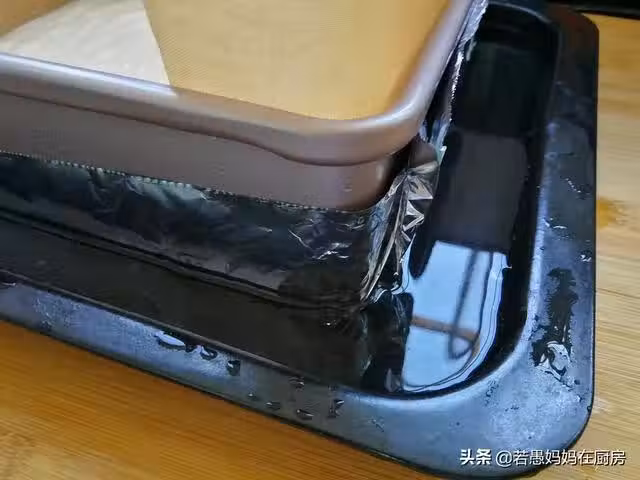 13、放入烤盤,烤70分鐘,為了蛋糕表面的顏色好看,中途可以在蛋糕上面蓋上一層錫紙。烤好的蛋糕直接拿出來脫模、切塊,不需要倒扣。