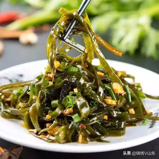 材料:海帶絲,姜,蒜,鹽,油,味精,生抽,陳醋,小米椒