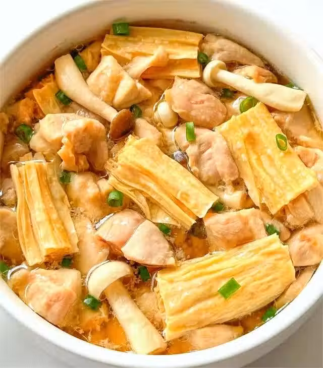 食材準備:雞腿,蔥段,薑片,醬油,玉米澱粉,食用油,菌菇,腐竹等。