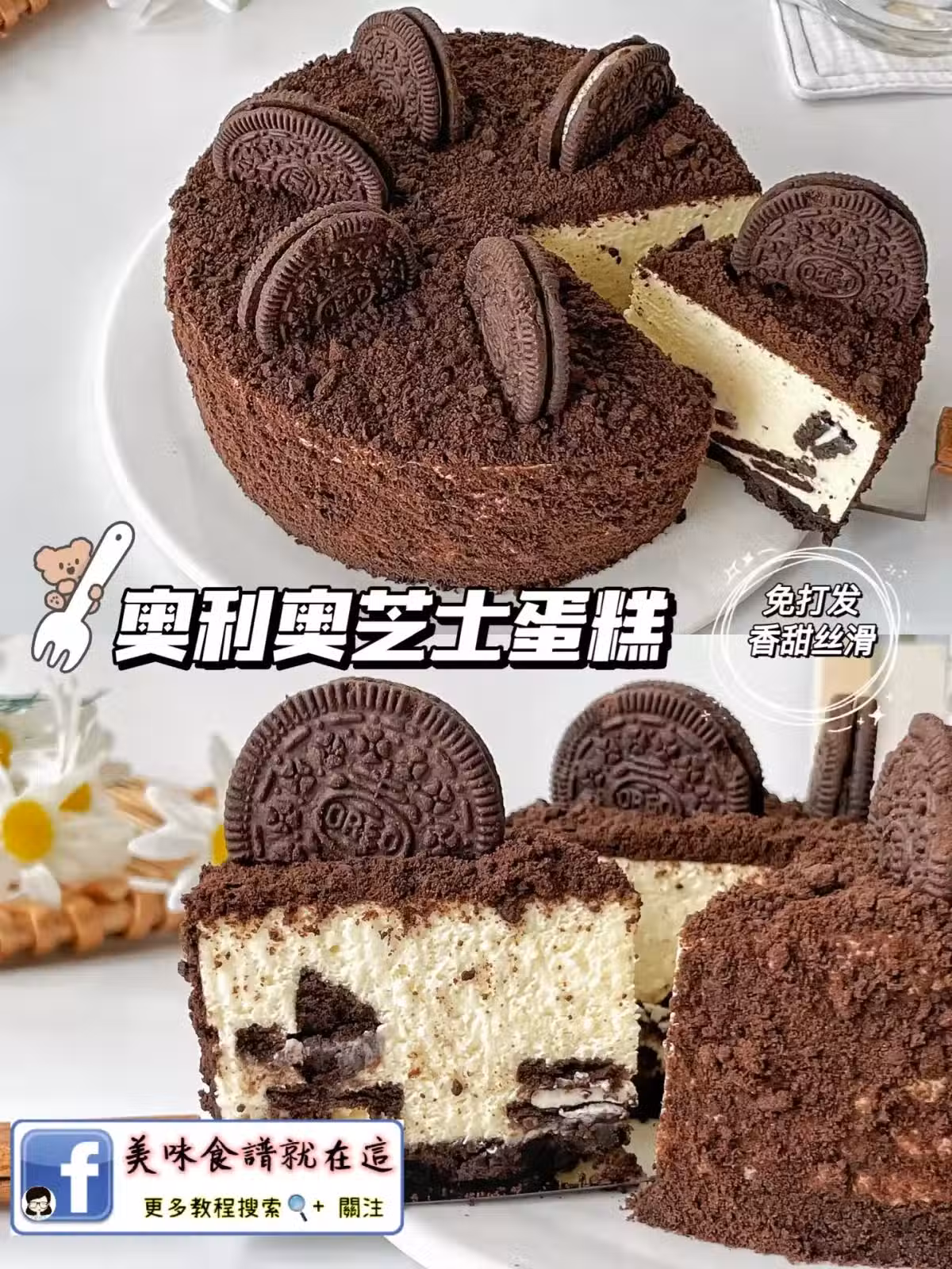 奧利奧餅乾碎90克、黃油50克、奶油奶酪250克、淡奶油200克、煉乳50克、牛奶35克、吉利丁片10克、奧利奧餅乾